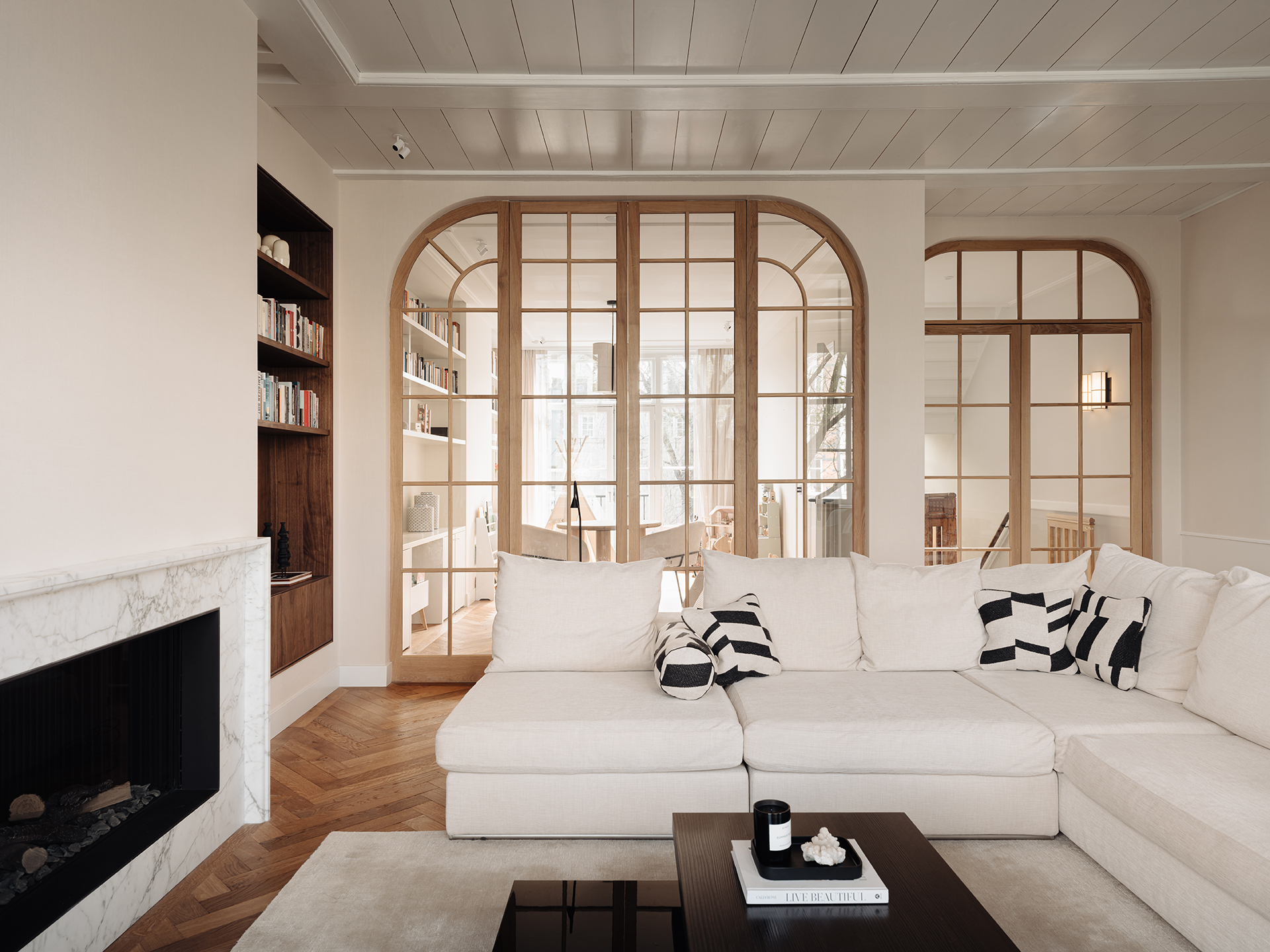 In samenwerking met een architect en interieurstyliste is de woning volledig verbouwd met nieuwe indelingen, vloerverwarmingsystemen, keuken, nieuwe toiletten en badkamers.